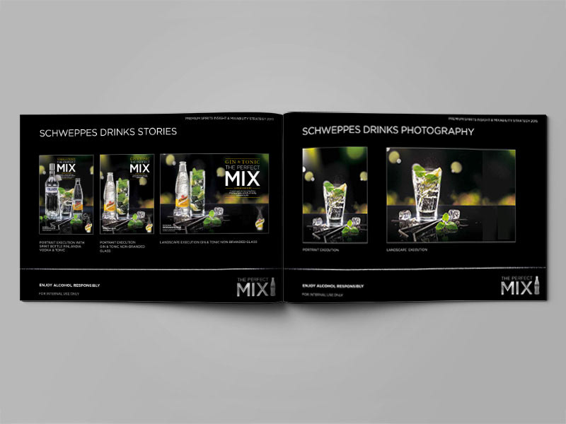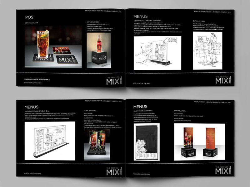 The perfect mix campaign targeted the premium bar, club & hotel sector to promote the use of quality mixers in making the perfect drink. To appeal to the target market, we created a guide that had a premium look and feel, like a high end cocktail menu.